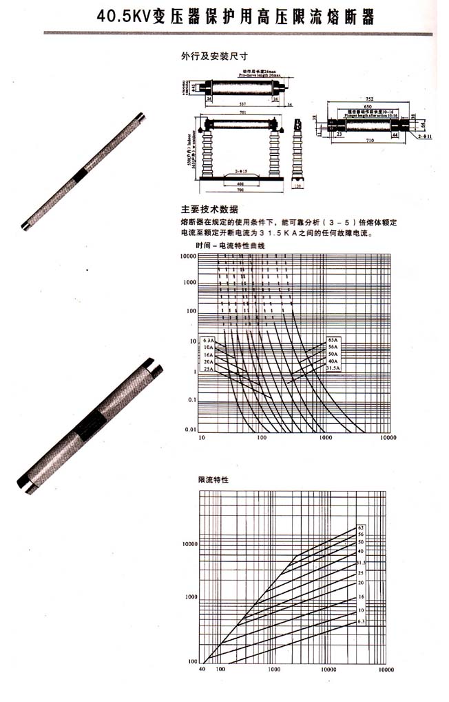 限流式跌落熔斷器具有良好的開斷性能,最大開斷能力可達20KA,額定開斷已經做到16KA。并且具有全范圍開斷能力,能滿足國內電網98%地方的要求。再之,在開斷18KA時,限流峰值僅有1.63KA,這種強限流能力更是電網求之不得的優良之處。它可以更好的保護電力系統免受動、熱損壞。