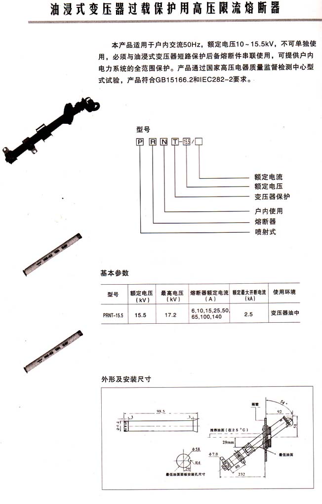 限流式熔管,可以安裝在任何型號的跌落上。現在為了將線路商議安裝的跌落熔斷器直接換成限流熔管,所以,首先生產的型號選擇了RM11型,但由于是限流熔管,所以叫做XRW11型。